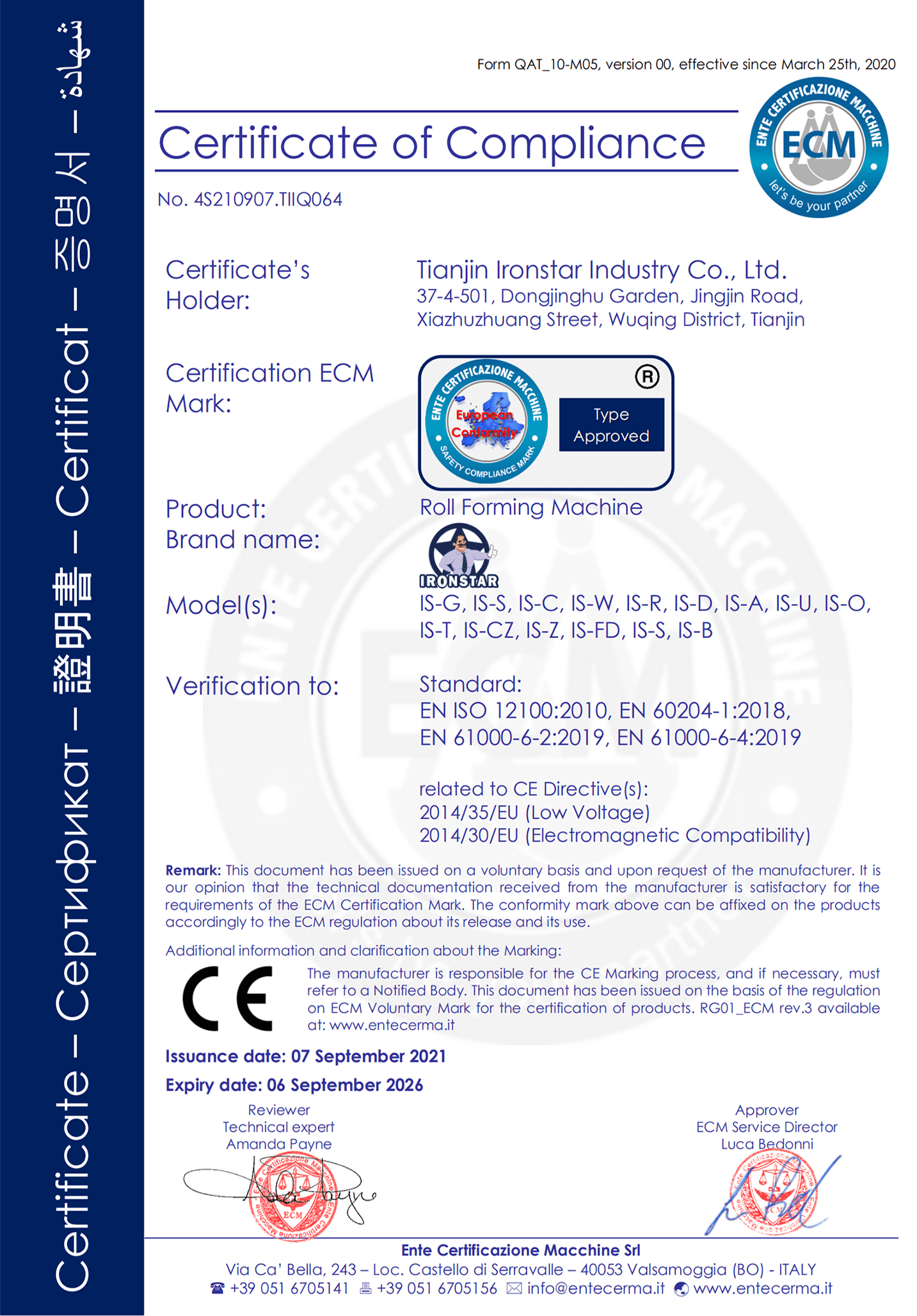 Tianjin Ironstar Industry Co., Ltd is one professional roll forming machine manufacturer, 26 years working experience and 400 worker provide service for you. Products mainly include: Trapezoidal sheet roof/wall panel machine, Glazed tile roofing roll forming machine, C U channel, Angle bead, Omega and T bar machine, Shutter slat door, door frame roll forming machine, C&Z shape interchangeable machine, Cap ridge, water gutter roll forming machine, Cutting, bending, slitting, curving machine, Floor deck and other customized machine etc.
