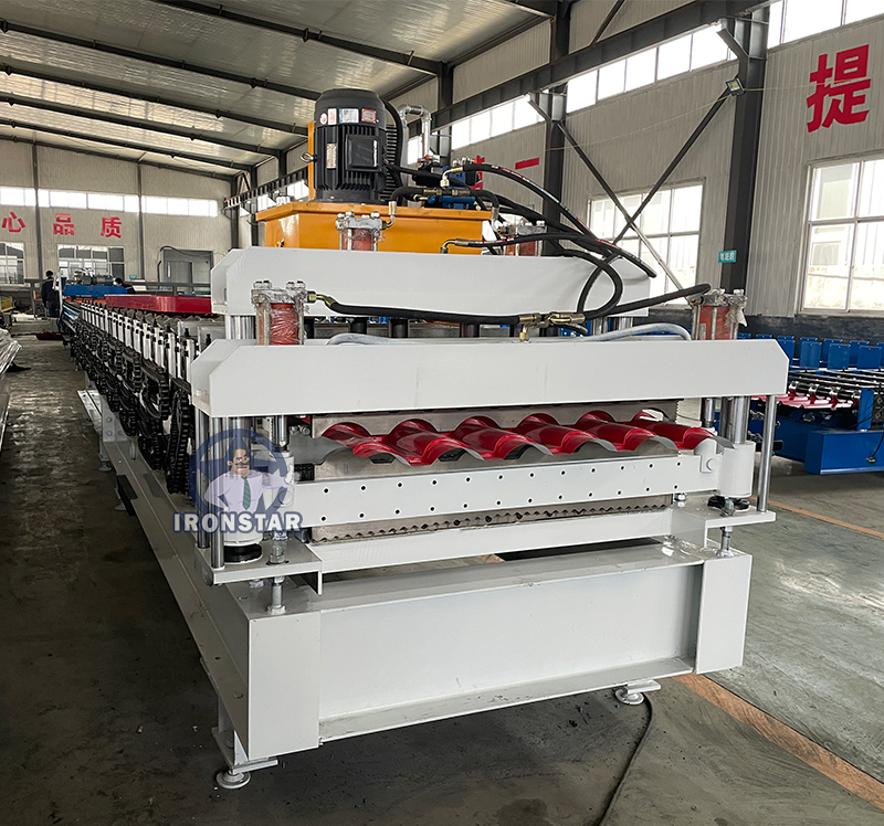 Corrugated and 6 rib bamboo tile double layer roll forming machine